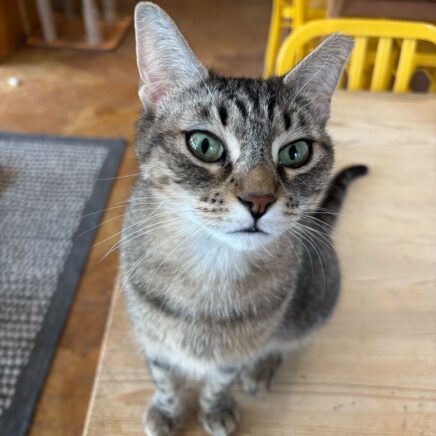 Loudest meow around. Likes to sound the alarm during feeding times. Knows what she wants and how to get it. Responsible adult of the lounge. Sister to Taylor. *NOW RETIRED!*